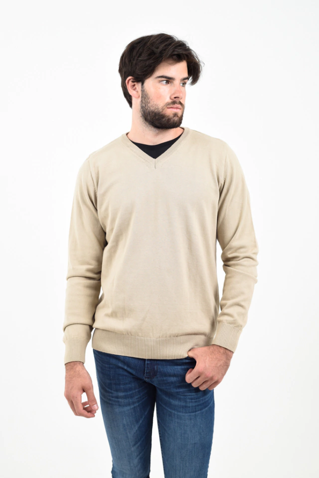 Sweater de algodón tejido, cuello en V.